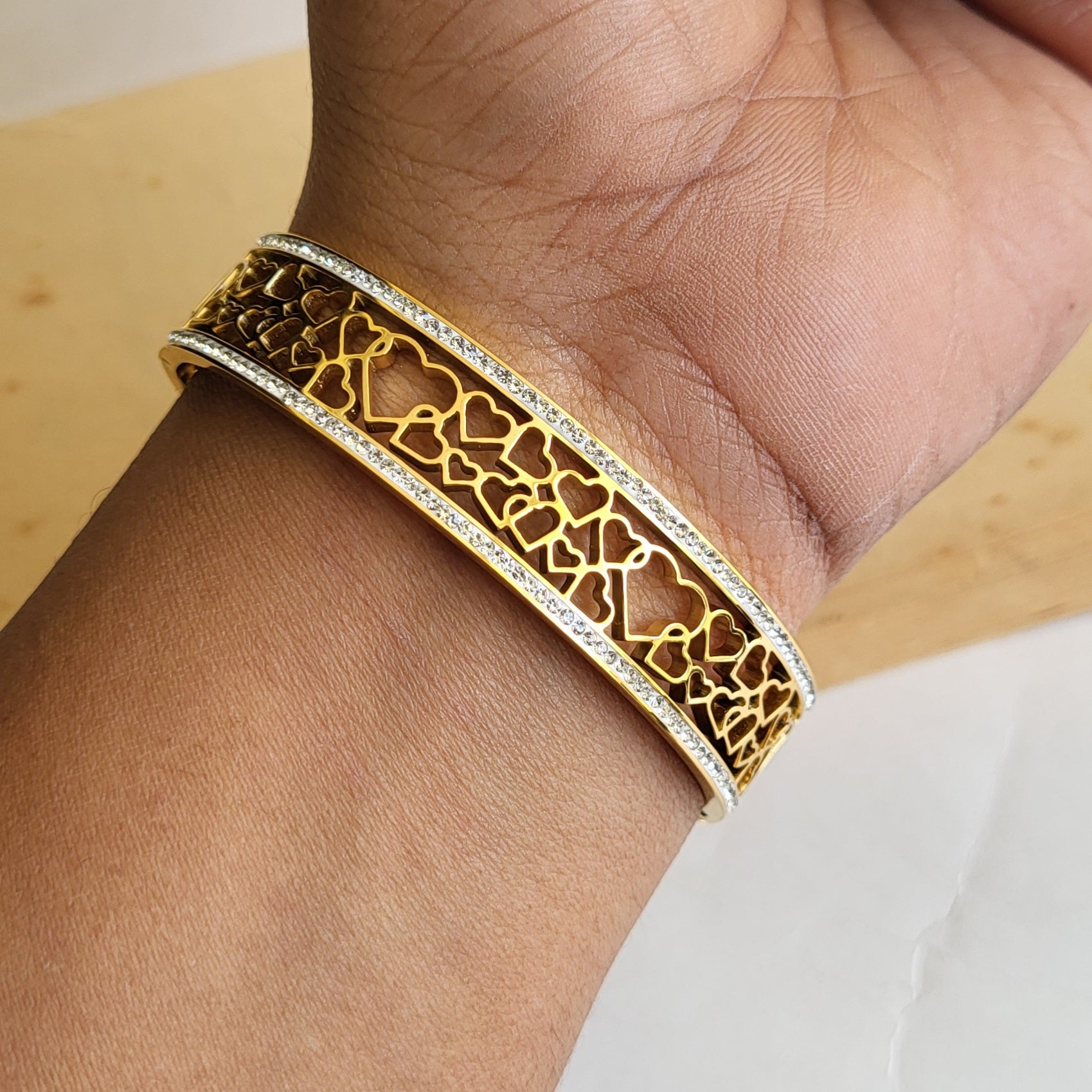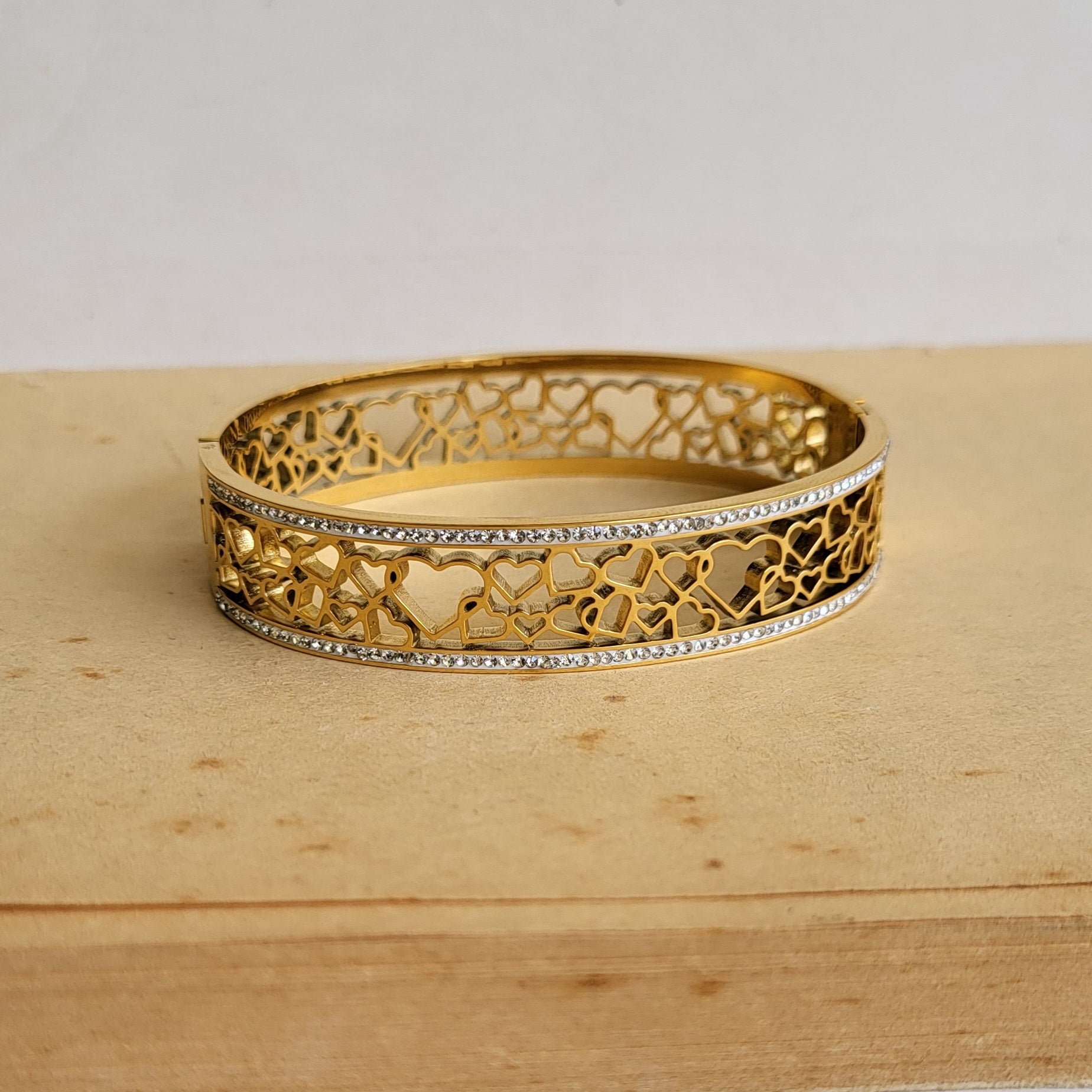 Size- Openable Fits 2.2-2.6. Material- Stainless steel with gold plating. Waterproof and tarnishfree