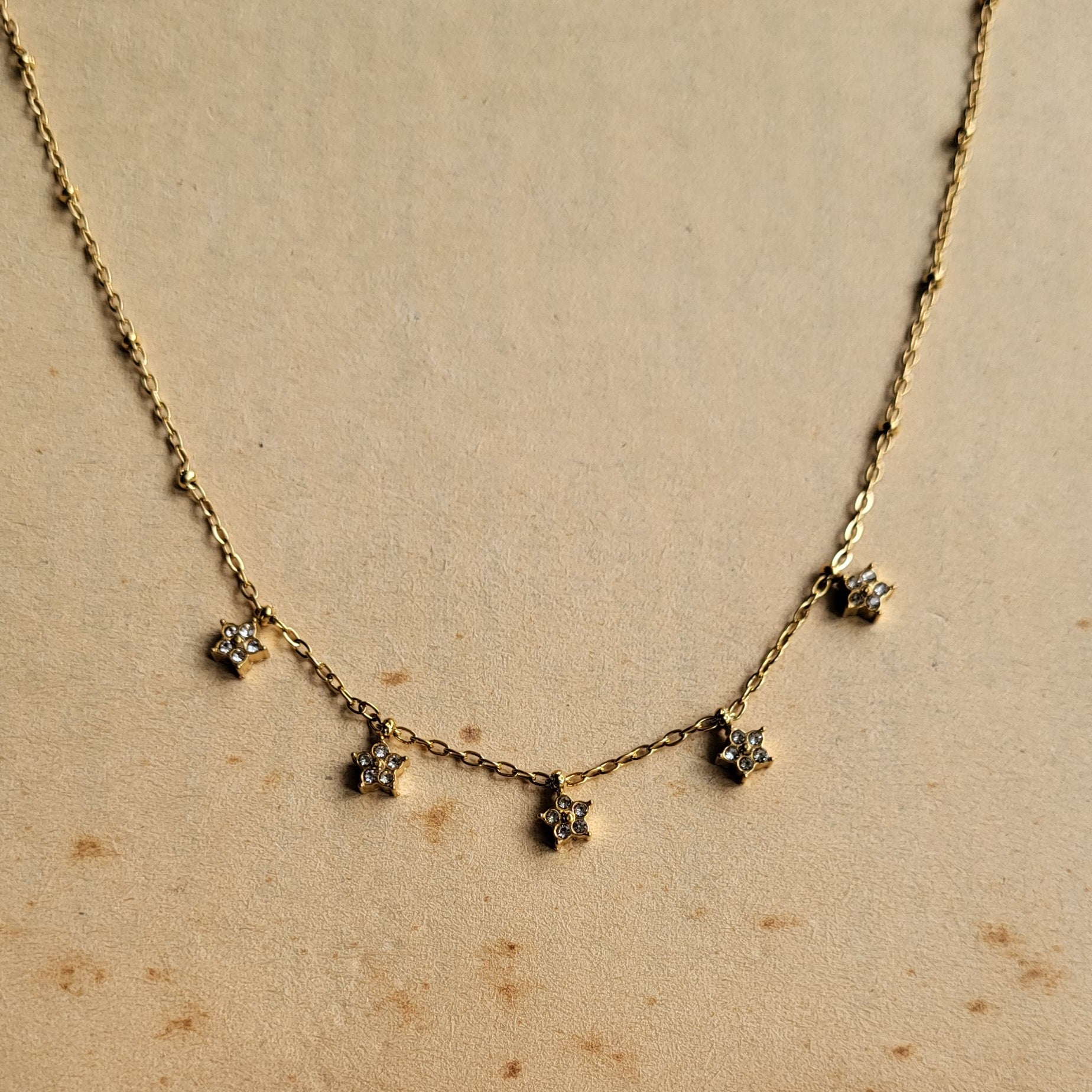 Size - 16 can be adjusted to 18 inches Material- Stainless steel gold plated, waterproof and tarnishfree
